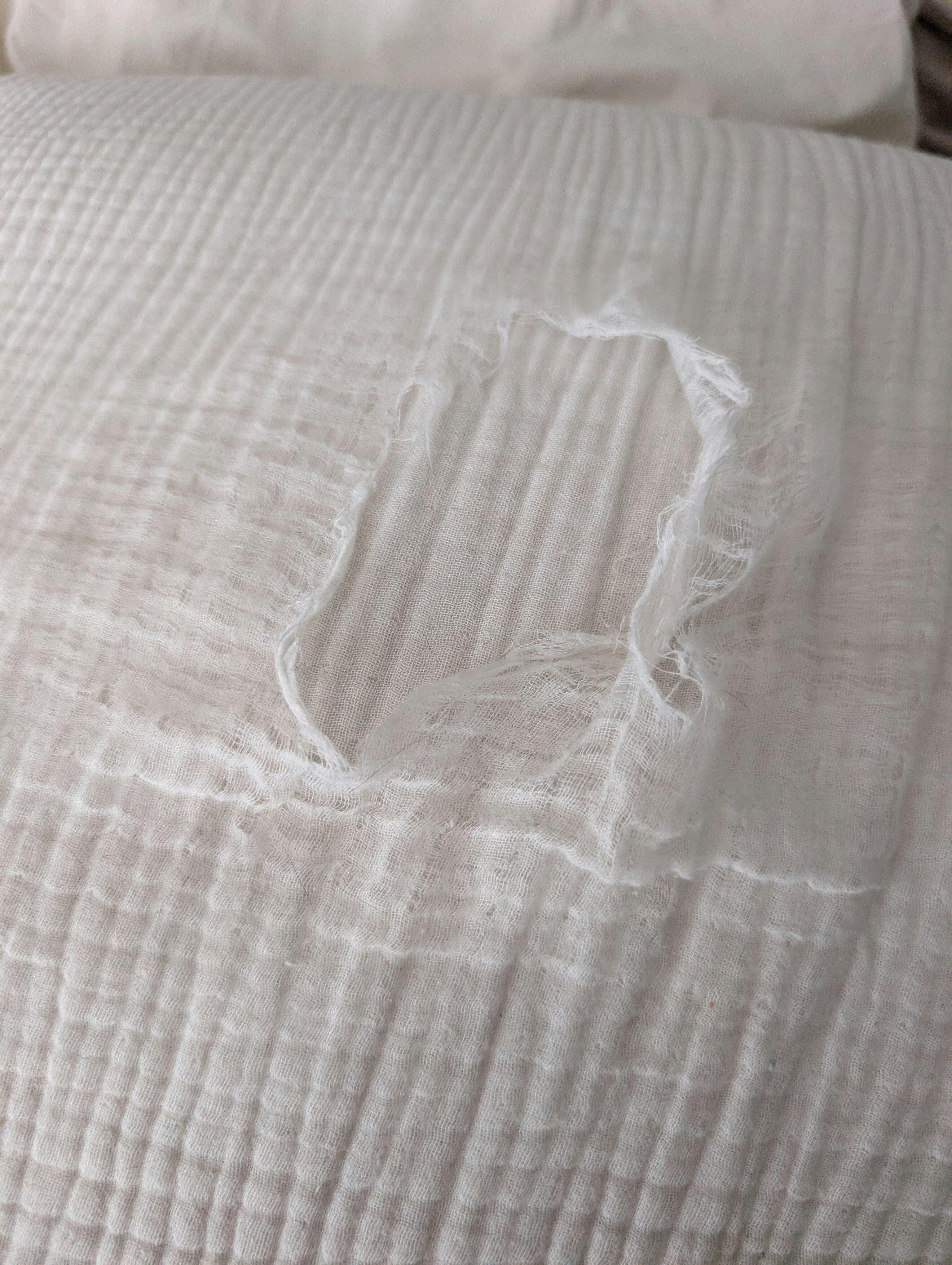 The product, a set of pillowcases, started to crumble and come apart in less than a year despite taking great care of it.